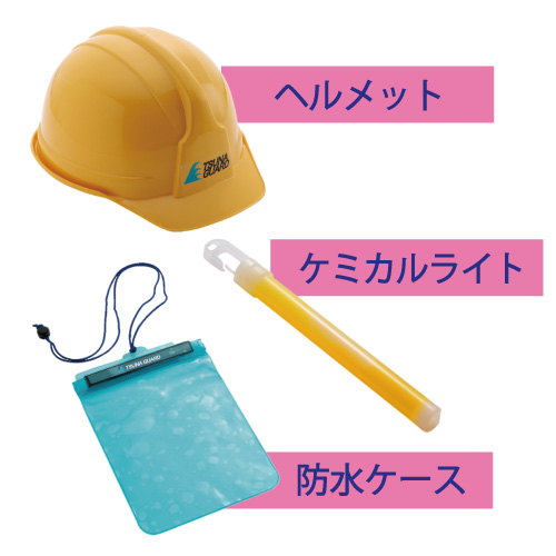 ◎付属品3点の「ヘルメット」・「ケミカルライト」・「防水ケース」