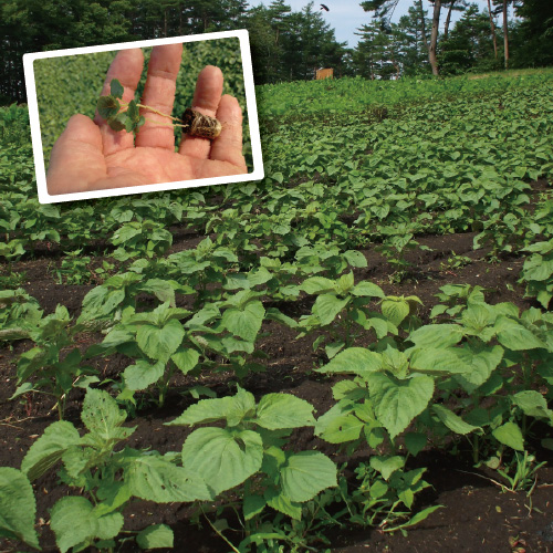 えごまは縄文遺跡からも見つかっており、1000年以上続く伝統穀物です。 岩手県九戸郡軽米町では、在来種の種が人々により大切に守られています。